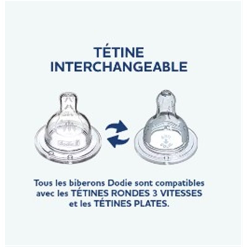 Les tétines Initiation+ s'adaptent sur tous les biberons Dodie col large (gammes Sensation+ et Initiation+)