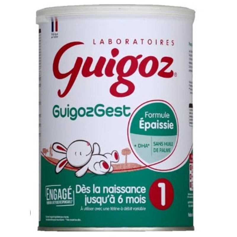 Guigoz GuigozGest 1 Lait est un lait qui convient dès la naissance jusqu'à l'age de 6 mois. Guigoz GuigozGest 1 Lait est destiné aux bébés qui souffrent de petites régurgitations, coliques, ballonnements ou constipation.