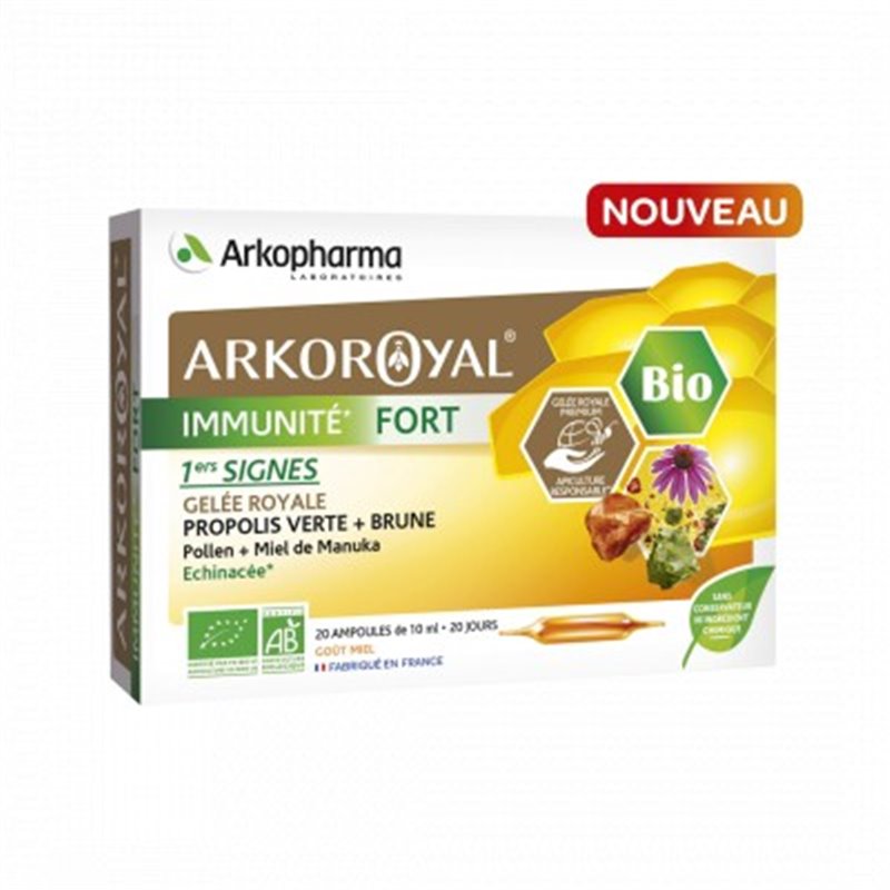 Arkoroyal® Immunité Fort BIO est formulé avec une gelée royale de qualité Premium, à la pureté préservée, et naturellement dosée à 2,5 % en Apalbumine-1. Il est garanti sans ingrédient chimique et sans conservateur.